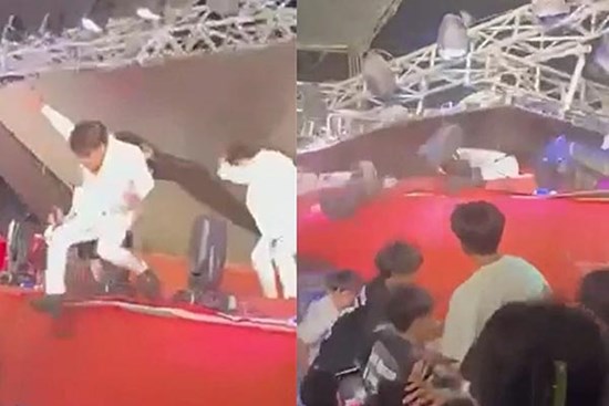 Ca sĩ nhóm HKT và vũ công bị màn hình led đổ đè trúng người khi đang hát