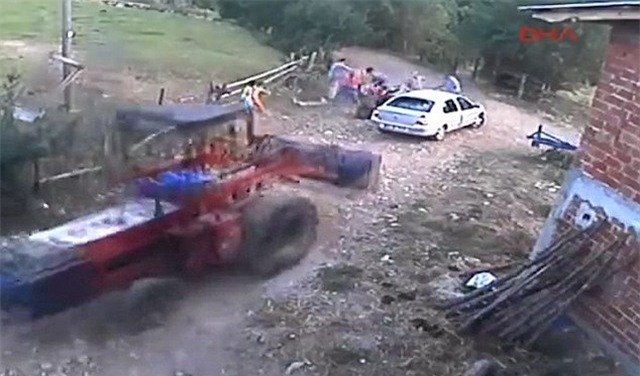 Video quay lại vụ ẩu đả ở Kastamonu, Thổ Nhĩ Kỳ giữa hai gia đình có mối thâm thù hơn 15 năm nay. Đoạn phim cho thấy ít nhất 10 người tham gia vào cuộc hỗn chiến. Đột nhiên, một chiếc máy kéo từ đâu xuất hiện, ầm ầm lao vào đám người đang đứng quanh một chiếc ô tô trắng. Hai người đứng trước mũi xe và những người còn lại đứng bên rìa.