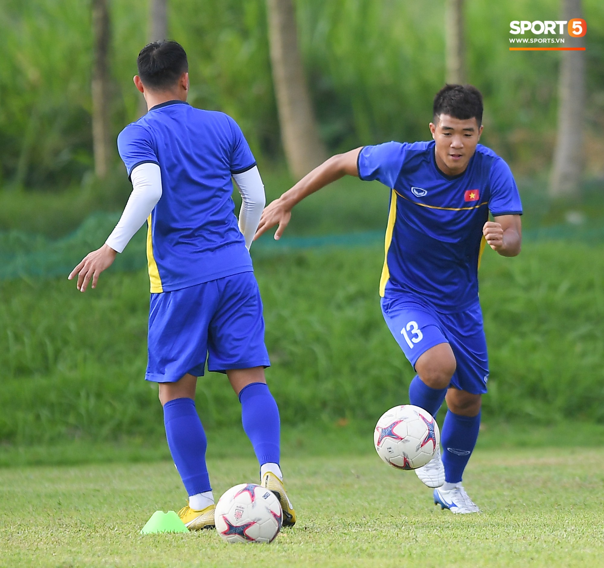 Văn Hậu được tập luyện cùng đàn anh Anh Đức, người hơn anh tới 14 tuổi. Ảnh: Hiếu Lương.