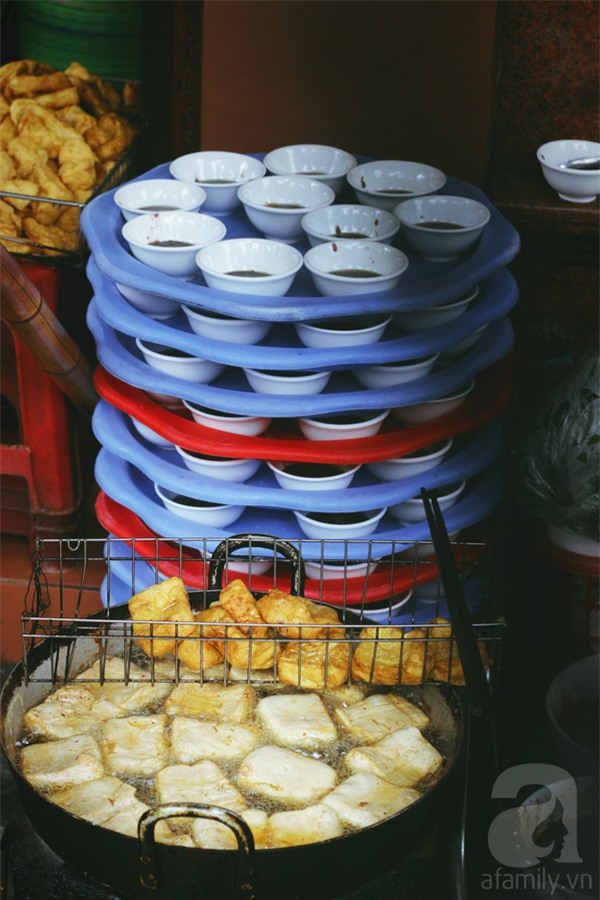 Quán bún đậu này đông khách đến mức cứ đến buổi trưa là khách lại ngồi tràn ở vỉa hè đển ăn. Điểm đáng chú ý ở quán này là các đồ gia giảm cho suất bún được bày biện cực đẹp mắt và hợp lý để phục vụ công tác chế biến nhanh nhất. Đậu được chiên sơ, chả xếp lớp, mắm tôm xếp thành chồng, có người cắt bún riêng. Cảnh tượng náo nhiệt ấy khiến thực khách đặc biệt ấn tượng.