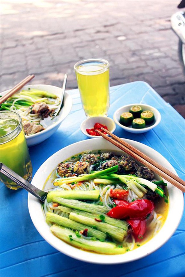 cộng của bún ở đây là thứ nước dùng thơm, chua chua vị dễ chịu. Các