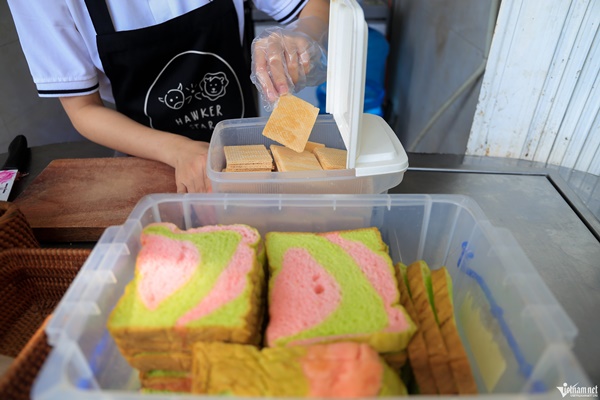 Điểm khác biệt so với kem truyền thống, kem này kẹp và ăn cùng với bánh xếp hoặc sandwich. Khi thưởng thức, thực khách sẽ cảm thấy lạ miệng, mỗi chiếc có giá 30.000 đồng.