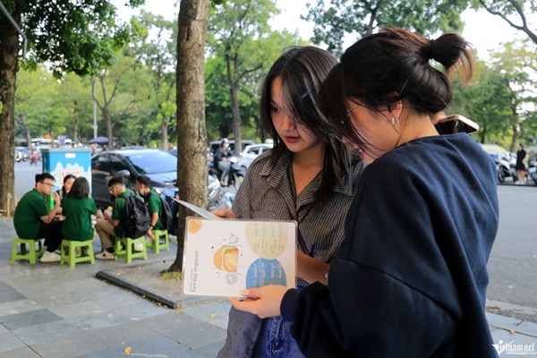 Chị Ánh và anh Sung (giữa, về Hà Nội từ Mỹ) sau một hồi loay hoay nhìn hai hàng kem kẹp Singapore gần nhau đã không biết chọn quán nào. Cuối cùng chị Ánh quyết định mua mỗi bên 2 chiếc. "Tôi thấy kem ở hai cửa hàng hương vị đều giống nhau, đều có mùi thơm của trái cây và không bị quá ngọt", người phụ nữ chia sẻ.