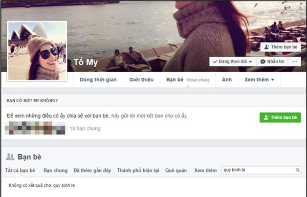 Danh sách bạn bè trên tài khoản mạng xã hội của Tố My và Quý Bình đều không có tên nhau.