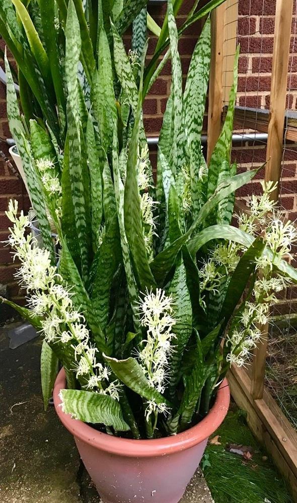 Cây lưỡi hổ có hoa màu trắng, trắng xanh hoặc trắng vàng. Hoa tạo thành những chùm nhỏ mọc theo cành, cánh hoa dài và khá mảnh.