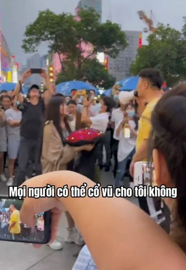 "Một video ghi lại cảnh tỏ tình của 1 thanh niên đang gây phẫn nộ trên MXH Weibo Trung Quốc. Bất chấp cô gái vô cùng khó xử giữa chốn đông người, chàng trai liên tiếp kêu gọi đám đông ủng hộ mình để ép cô gái đồng ý.