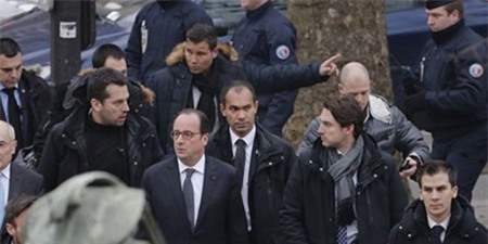 Tổng thống Pháp tại hiện trường tuyên bố bảo vệ các nhà báo thực thi quyền tự do ngôn luận. |