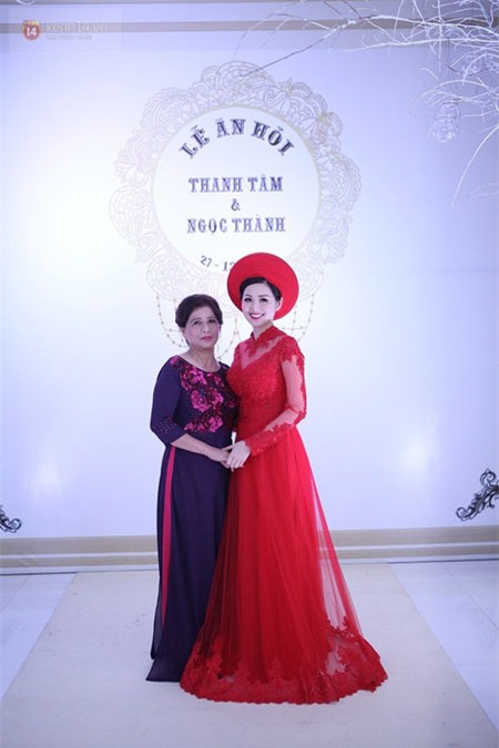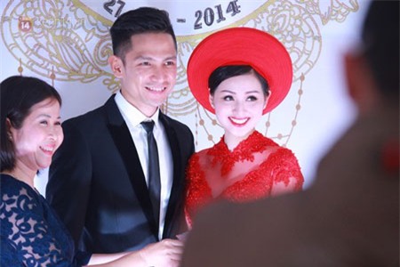 Có thể thấy, Tâm Tít cực kỳ xinh đẹp và rạng rỡ trong tà áo dài đỏ, diện mạo điển trai đậm chất thiếu gia của chồng Tâm Tít cũng khiến nhiều người trầm trồ. Những nụ cười tươi tắn đã thể hiện sự hạnh phúc của cặp đôi trai tài gái sắc trong ngày trọng đại.