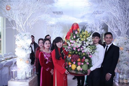 Khoảnh khắc ngọt ngào trong lễ ăn hỏi. |