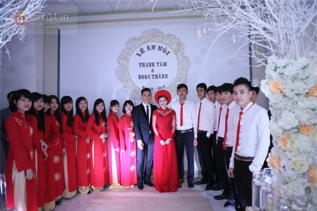 Cặp đôi trai tài gái sắc này chụp hình kỷ niệm cùng người thân, bạn bè. |