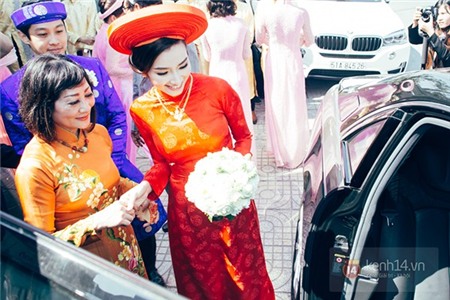 Cô dâu Trúc Diễm xuất hiện nổi bật với áo dài đỏ
