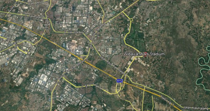 Sân Wibawa Mukti nằm ở Bekasi Regency, thuộc tỉnh Tây Java, cách trung tâm thủ đô Jakarta khoảng 50km về phía Đông.