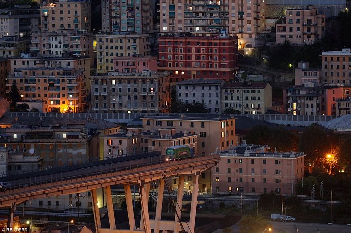 Cầu Morandi, dài hơn 1 km được xây dựng vào năm 1968, đặt trên theo người thiết kế nó là kiến trúc sư Riccardo Morandi, kết nối đường cao tốc A10 và A7 ở Italia. (Ảnh: Daily Mail)