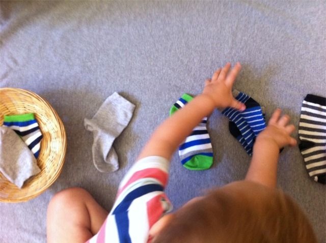 Hãy cho con sắp xếp các đôi tất lại với nhau và đếm xem có bao nhiêu chiếc tất, bao nhiêu đôi tất (Ảnh minh họa).