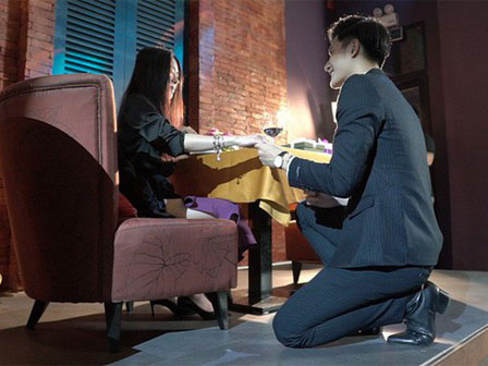 Đầu tiên, Châu cố ý để Sương phải ngồi đợi rất lâu, cho tới khi cô tức giận và định bỏ ra về thì anh đột ngột xuất hiện. Với bó hoa trên tay và gương mặt lãng tử đẹp trai, Châu đã thuyết phục Sương ở lại và đưa cô tới bàn ăn được trang trí đẹp mắt.