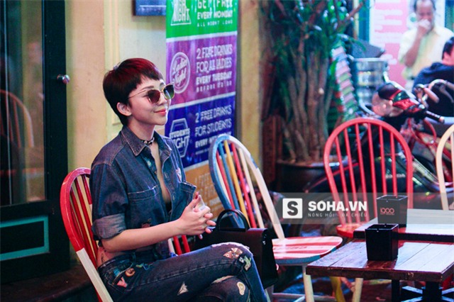 Tóc Tiên đến khá sớm và vui vẻ chọn cho mình 1 chỗ ngồi yên tĩnh.