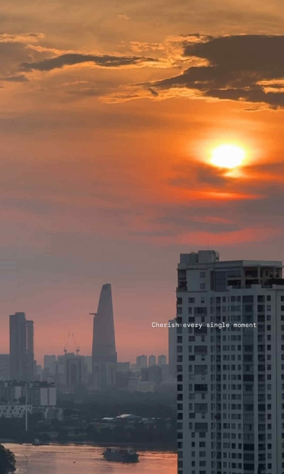 Mới đây, trên trang cá nhân, nữ ca sĩ tiếp tục cập nhật cuộc sống đời thường với nhiều thay đổi từ ngoại hình đến không gian sống. Người đẹp đăng hình view hoàng hôn triệu đô nhìn ra tòa nhà Landmark 81 sang chảnh kèm dòng trạng thái: "Cherish every single moment" (Tạm dịch: Trân trọng từng khoảnh khắc).