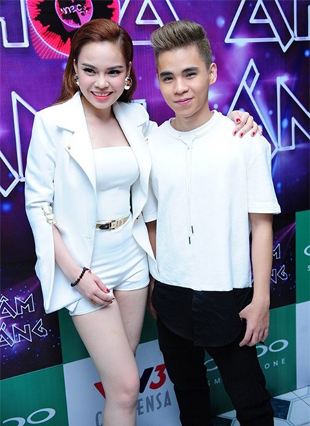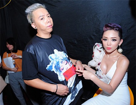 Hoàng Touliver mặc áo in hình Tóc Tiên. |