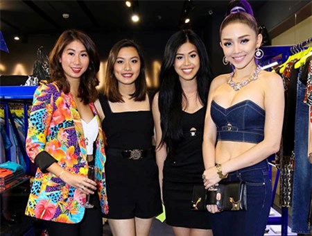 Đến dự tiệc khai trương, Tóc Tiên dành nhiều thời gian hàn huyên cùng Thảo Tiên và những người bạn của cô. Vẻ đẹp nóng bỏng của nữ ca sĩ hải ngoại được khách mời khen ngợi là cá tính và hợp xu hướng. |