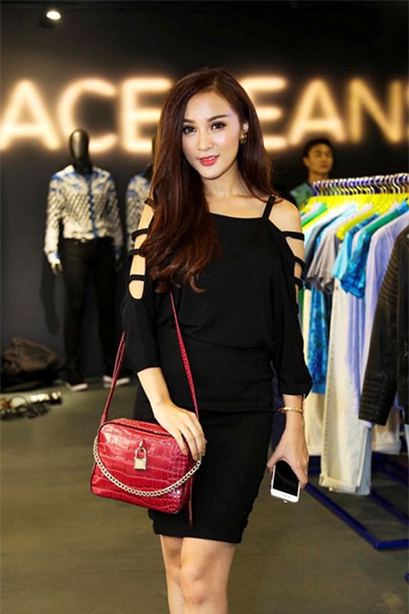 Dự tiệc ra mắt nhãn hàng còn có hot girl Kelly Nguyễn. Người đẹp 9X diện trang phục tối màu đơn giản và nữ tính. |