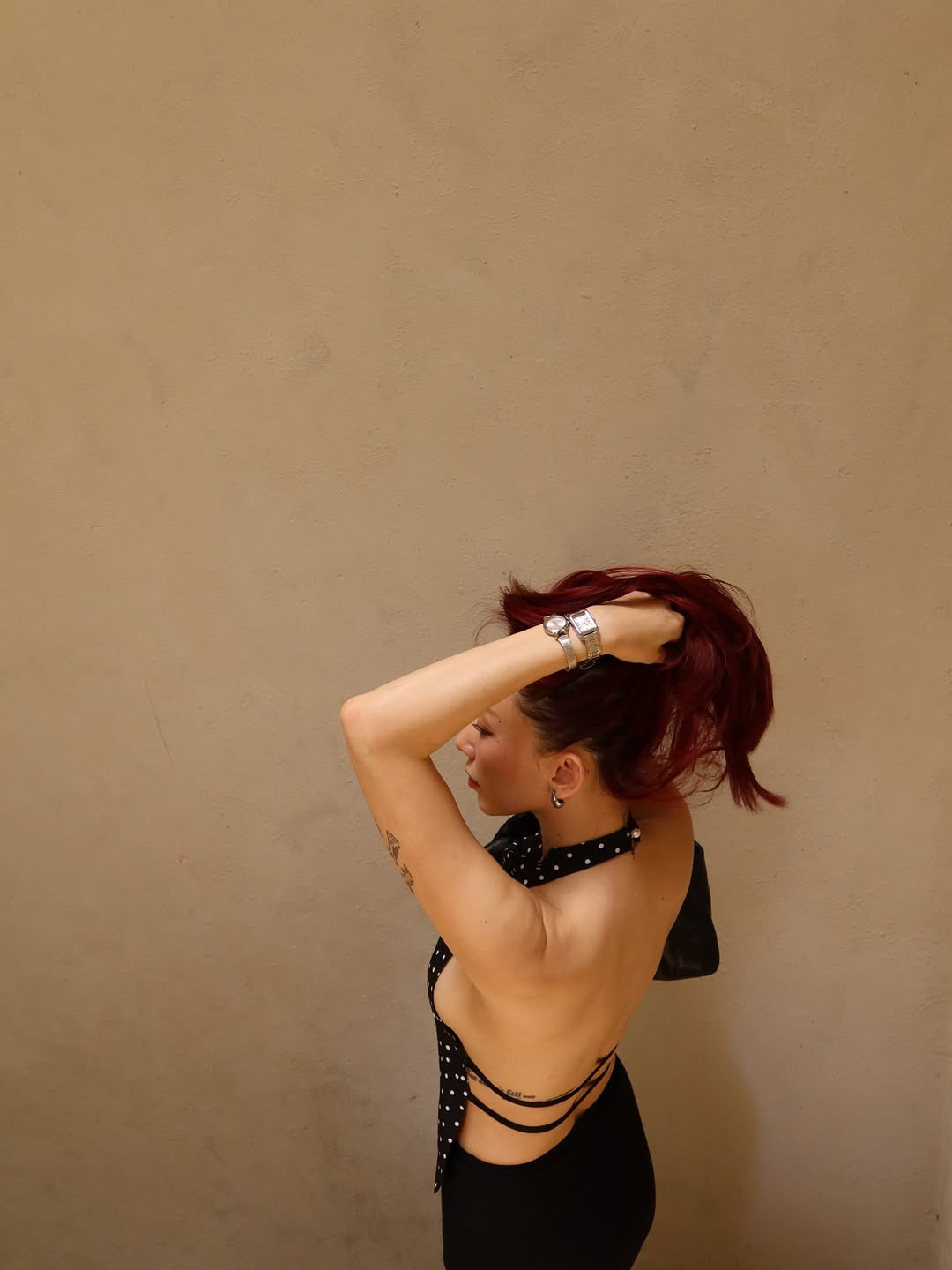 Nữ ca sĩ vẫn dành thời gian bên những người bạn thân thiết và hoàn toàn vắng bóng ông xã Hoàng Touliver. Đáng chú ý, trong loạt ảnh mới này, Tóc Tiên lên đồ cực cháy với chiếc áo hở toàn bộ phần lưng trần nõn nà cùng võng lưng siêu đẹp. Giọng ca 8x phô diễn được chiếc eo bé tí, vòng 1 lấp ló cùng loạt hình xăm ý nghĩa.