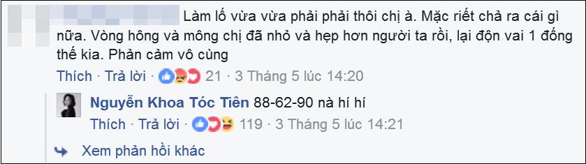 Tuy nhiên, cô lấy số đo ba vòng chuẩn mực 88 - 62 - 90 ra để đáp trả anti-fan này.
