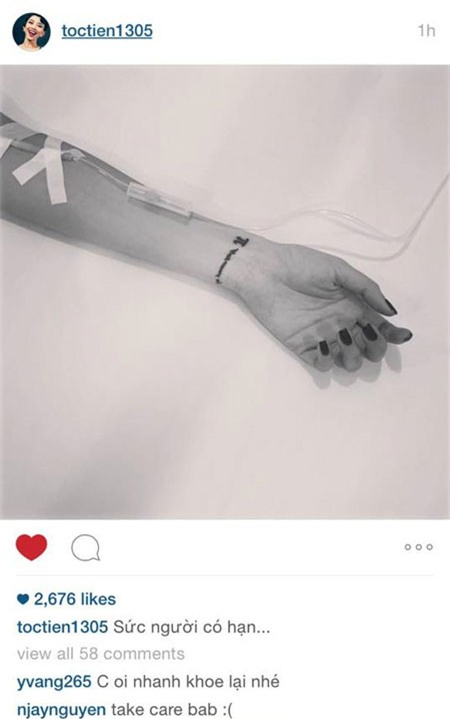 Tóc Tiên chia sẻ tình trạng sức khỏe của cô trên Instagram. |