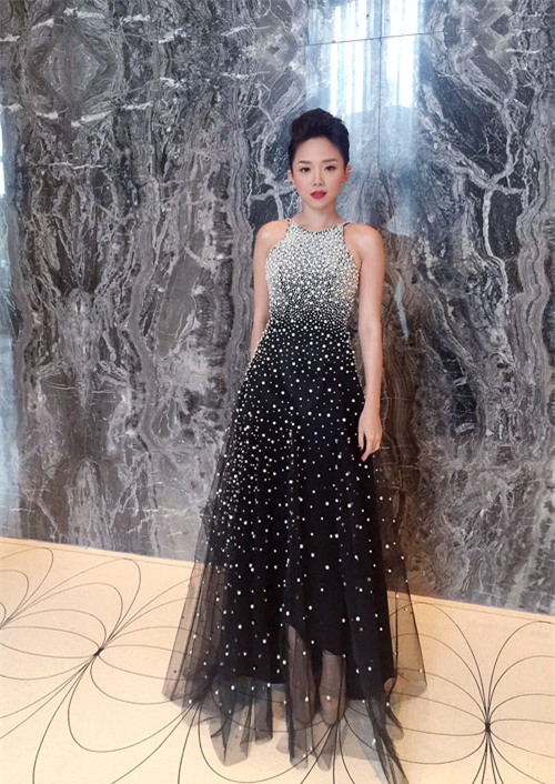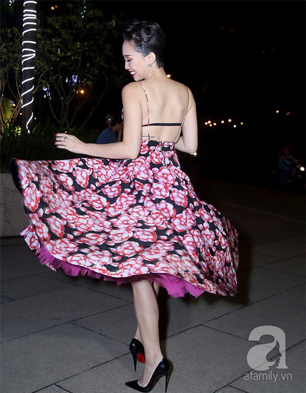 Khi xuất hiện trên thảm đỏ quốc tế, Tóc Tiên cũng lựa chọn kiểu váy yêu thích khoe nét trẻ trung.