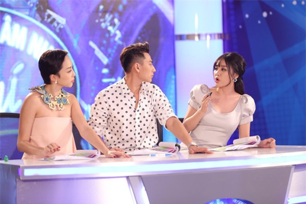 Tóc Tiên và Văn Mai Hương tranh luận trên ghế nóng. |