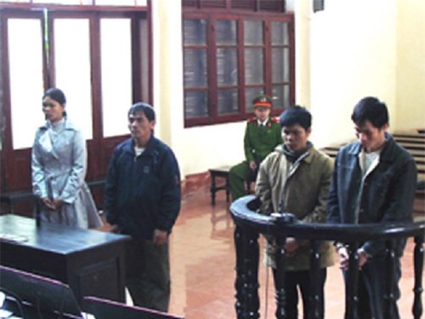 Hai bị cáo Bùi Văn Nịnh và Bùi Văn Chung tại phiên tòa ngày 23/3/2011. Mặc áo trắng là chị Triệu Thị N. |