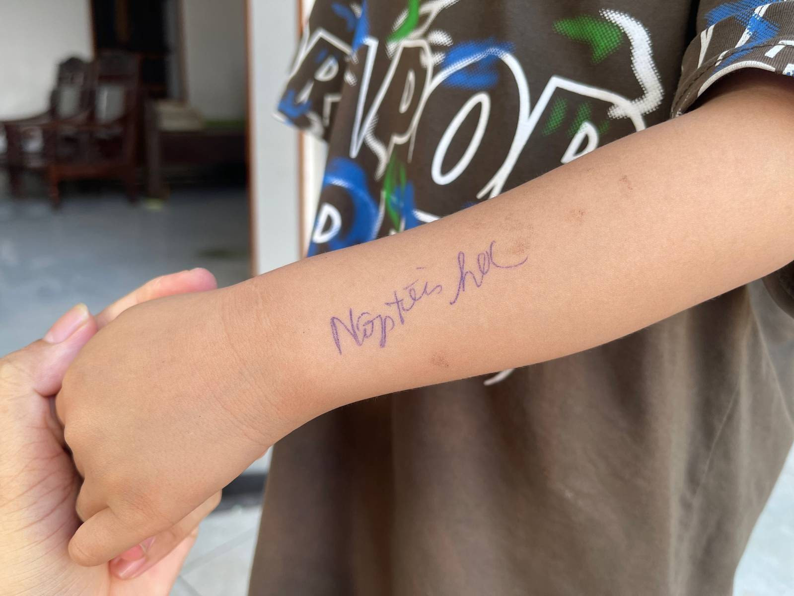 Nỗi nhớ ấy ùa về khi tôi nhìn thấy dòng chữ trên tay đứa bé kia. Tôi tự hỏi: Tại sao lại chọn cách đó? Tại sao những chuyện nhạy cảm như tiền học – một điều tưởng nhỏ – lại phải in dấu lên cơ thể và tâm trí con trẻ?