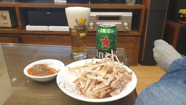 Tương ớt tự pha thì đảm bảo chất. Mực nướng với bia thơm lừng. Và tiếp đó thì mang ra nhâm nhi, ngồi cổ vũ cho đội tuyển Việt Nam thôi.