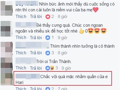 Tuy nhiên, khi "đại gia phố núi" đăng hình trong ngày sinh nhật con trai, nhiều cư dân mạng chú ý đến chiếc quần Trấn Thành đang mặc. Nhiều người hài hước cho rằng vì đi làm vội quá nên nam MC đã mặc nhầm quần vợ.