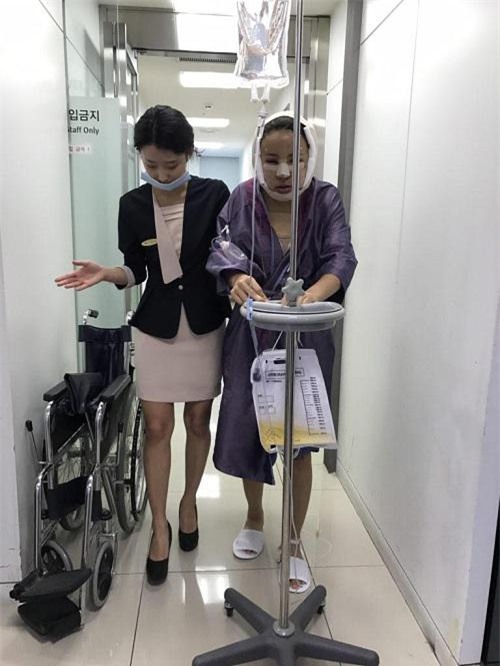 Hình ảnh sau khi hồi sức tỉnh mê 30 phút, Ngọc tự đi bộ từ phòng phẫu thuật về phòng nghỉ dưỡng.