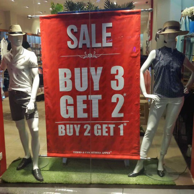 Khuyến mại siêu khủng: Mua 2 tặng 1 nhưng mà mua 3 thì chỉ đưa 2 thôi.
