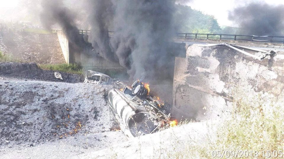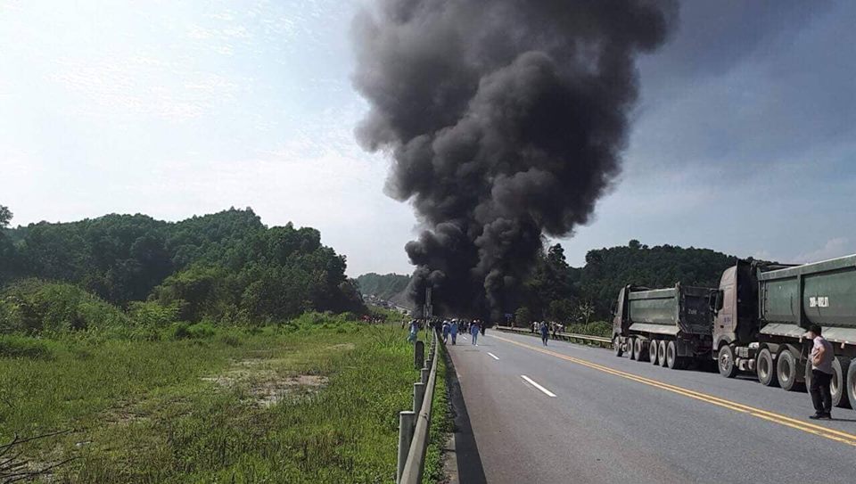 Lái xe tải đã nhanh chóng thoát ra trước khi xe phát nổ, cháy ngùn ngụt.