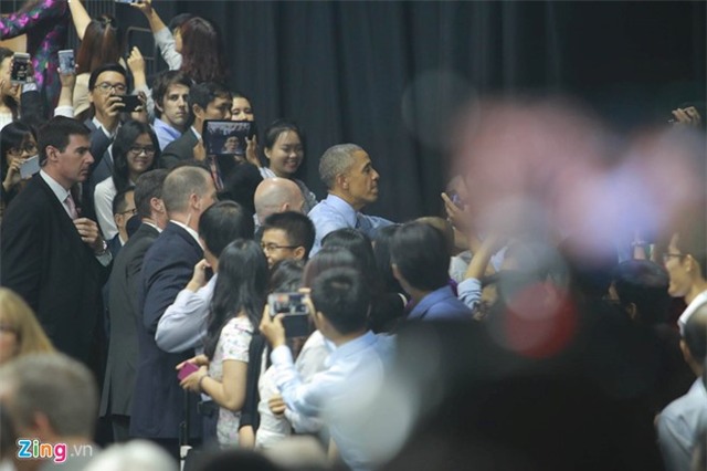 Tổng thống Obama giao lưu, chụp ảnh với các bạn trẻ trước khi ra sân bay đi Nhật. Ảnh: Lê Quân