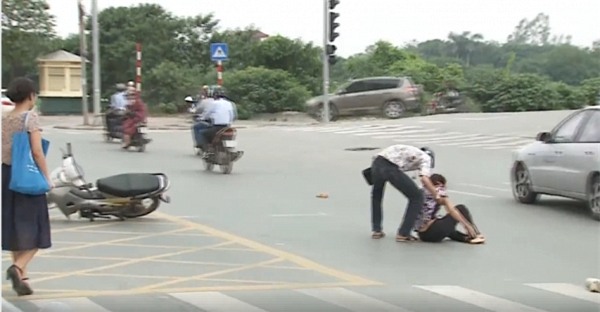 Tuy nhiên, điều đáng nói ở đây, người thanh niên điều khiển xe máy sau khi xảy ra va quẹt với người sang đường thì chạy đến đỡ nạn nhân, đi kèm với thái độ bực tức đổ lỗi. Sau đó, anh nhanh chóng quay xe bỏ đi để mặc nạn nhân một mình nằm sõng soài giữa đường thay vì đáng ra phải hỏi hang tình hình sức khỏe để đưa đến bệnh viện kiểm tra.