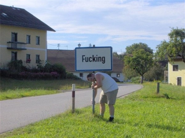 Tại Áo, thị trấn này được đặt tên là "Fucking" trong thế kỷ thứ XI và người ta cho rằng một người đàn ông tên là Focko , người sáng lập của làng, là người đã đặt tên cho nó. Ngôi làng này là không đông dân lắm, nó chỉ có 104 người dân, nhưng cái tên độc đáo của nó làm cho nó được biết đến rộng rãi đối với nhiều người dân trên khắp thế giới đặc biệt là ở các nước nói tiếng Anh (trong tiếng anh từ Fuck có nghĩa là giao hợp, quan hệ tình dục).