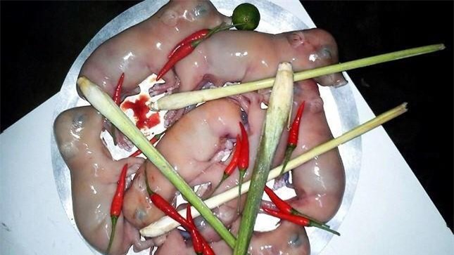 Đặc sản thịt chuột bao tử tại Trung Quốc, được biết đến với cái tên “3 tiếng thét”, có thể xem là món ăn kinh dị nhất trong số những món ăn kinh dị trên thế giới. Nguyên liệu chính của món này sẽ là những con chuột mới sinh, chúng thường được cho ăn mật ong tăng độ ngậy trong thịt chuột, và thường bị ăn ngay khi còn sống.