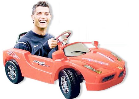 Thêm một trò đùa tinh nghịch của những chàng Quỷ Đỏ. Hồi Cristiano Ronaldo đâm xe trong đường hầm Manchester đầu năm 2009, đồng đội của anh có cách “chia sẻ thương đau” theo cách chẳng giống ai. Họ mua một chiếc xe đồ chơi có giá 40 bảng. “Siêu xe” siêu rẻ này mô phỏng theo xế hộp Ferrari và được họ gắn thêm chiếc biển như biển xe xịn mà Ronaldo hay dùng.