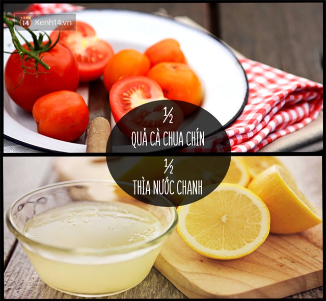 - Chuẩn bị: ½ quả cà chua chín và ½ thìa nước cốt chanh.