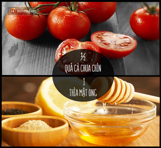 - Chuẩn bị: ½ quả cà chua chín và 1 thìa mật ong.