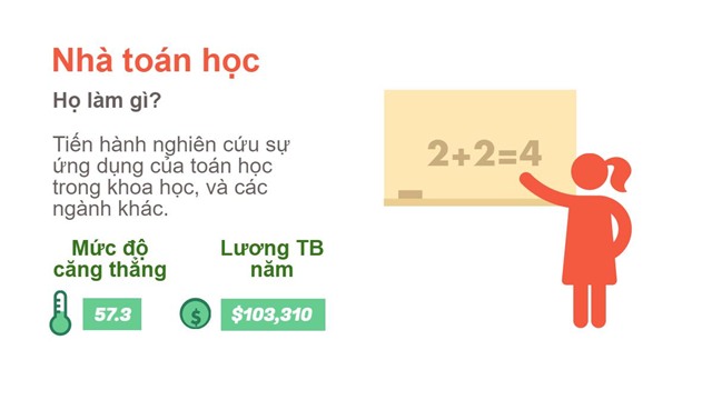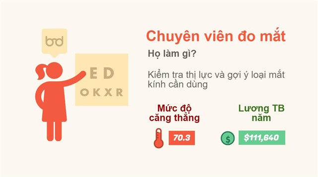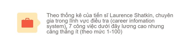 Sở lao động Mỹ thực hiện sự so sánh mức lương và mức độ căng thẳng của 767 công việc khác nhau, kết quả cho thấy có 7 công việc mức lương tốt nhưng chịu ít áp lực.