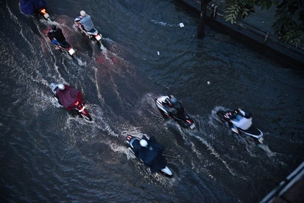 Nước ngập cộng mưa lớn vào giờ tan tầm khiến người dân gặp nhiều khó khăn để về nhà