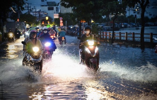 Theo ghi nhận của phóng viên Báo Tin tức, chiều tối 27/9, nhiều nơi ở TP Hồ Chí Minh đã xảy ra mưa vừa đến mưa to, kết hợp cùng triều cường dâng cao khiến nhiều tuyến đường ở vùng trũng và nằm gần sông bị ngập.
