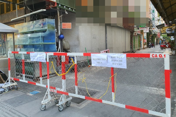 Con hẻm 40 Bùi Viện được rào chắn, hạn chế ra vào khi xác định ca nhiễm mới (BN54) từng lưu trú tại đây.