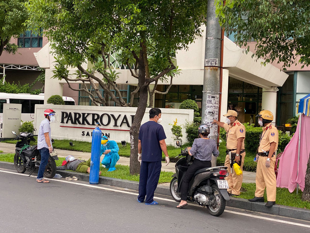 "Vì có kinh nghiệm xử lý nên chúng tôi rất chủ động. Người vợ lúc này khó thở quá nên nằm vật ra dải phân cách. Tổ công tác mỗi người một việc, tìm oxy cho bệnh nhân nhanh nhất có thể", Trung úy Sang kể lại.