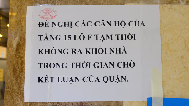 Khu vực phong toả của chung cư được cơ quan chức năng thông báo cư dân trong khu cách ly tạm thời không ra khỏi nhà