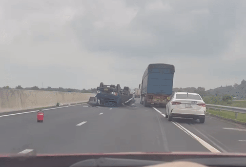 Có ít nhất 3 xe máy bị tông trúng, nằm lăn lóc giữa đường, trong đó 1 xe bị mắc kẹt dưới gầm ô tô tải. Nhiều người điều khiển xe máy bị thương được đưa đến bệnh viện cấp cứu.